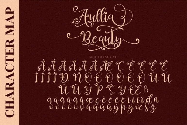 Aullia Beauty is a beautiful and refined Script Font. It has a classy, elegant, and modern look that can be used for logos, branding, invitations, stationery, wedding designs, social media posts, and much more! This font is PUA encoded which means you can access all of the glyphs and swashes with ease!