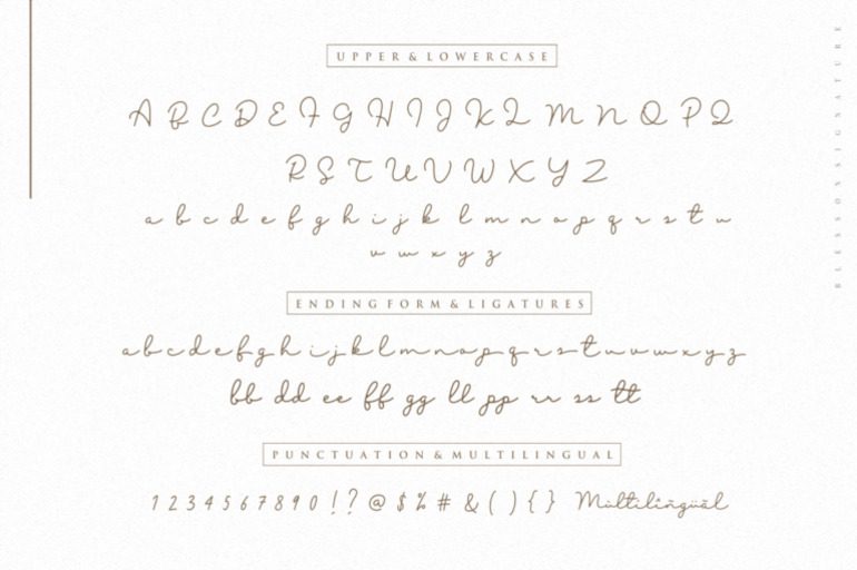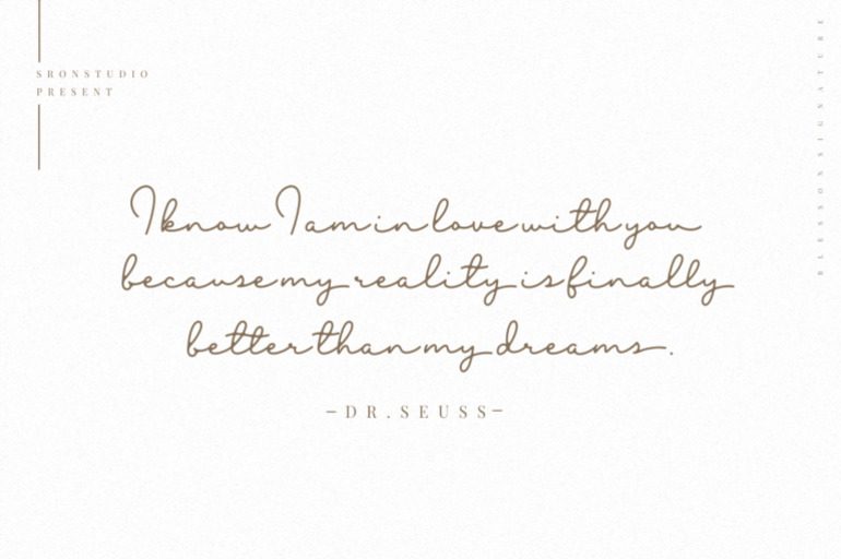 Blesson – a new modern signature with a fine stroke and elegant lines make this font perfect for your personal branding and any awesome project, such as : logos, invitations, stationery, wedding designs, social media posts, advertisements, product packaging, product designs, labels, photography, watermarks, special events and much more !