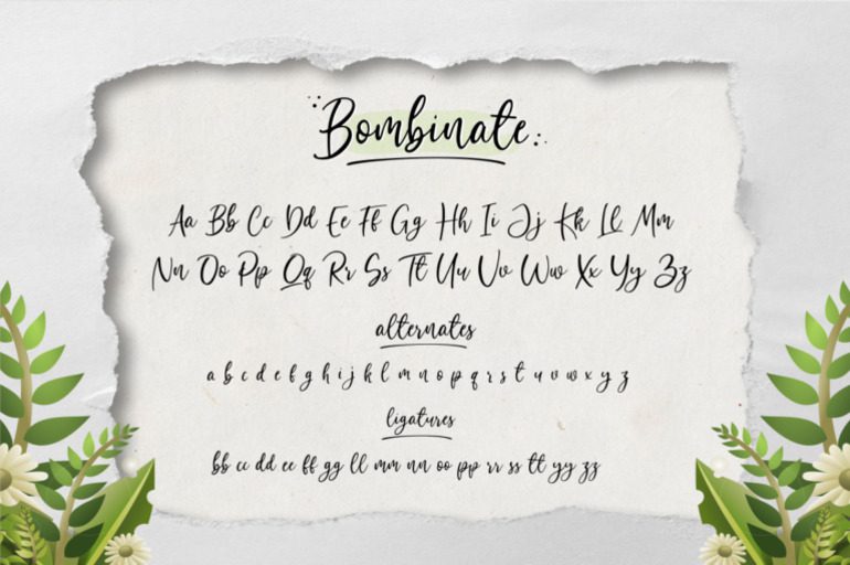 Bombinate – a new modern & fresh hand lettering font that comes with alternate and start & ending swashes, make this font looks natural, elegant, and perfect for any awesome projects. Bombinate is perfect for many different project such as logos & branding, invitation, stationery, wedding designs, social media posts, advertisements, product packaging, product designs, label, photography, watermark, special events or anything.