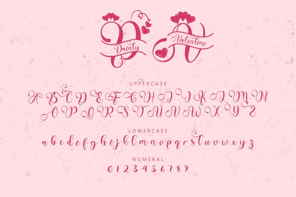 Dainty Valentine font is a romantic and elegant script typeface that captures the essence of love and charm. With its delicate curves, flowing strokes, and hand-drawn aesthetic, it adds a graceful touch to any design. Perfect for wedding invitations, greeting cards, or romantic branding, Dainty Valentine exudes warmth and sophistication. Its timeless beauty and gentle appeal make it an excellent choice for projects seeking to evoke emotion and heartfelt sentiment.
