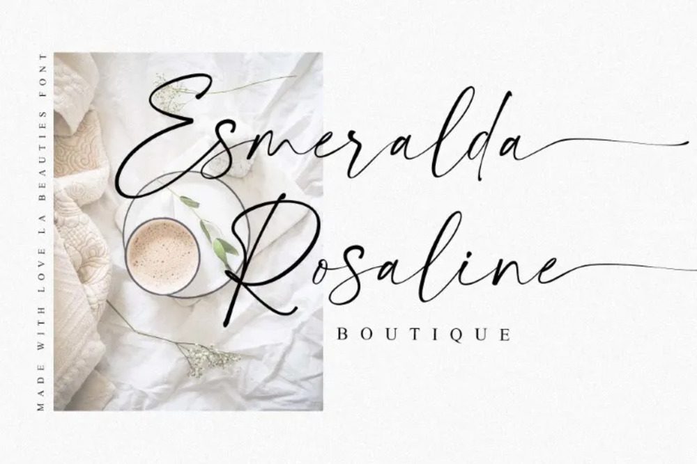 La Beauties font is a graceful, modern script that blends delicate curves with a refined aesthetic. Its flowing strokes and elegant design make it ideal for wedding invitations, branding, and upscale projects. Versatile and timeless, it radiates sophistication, adding a touch of luxury and charm to any creative endeavor.