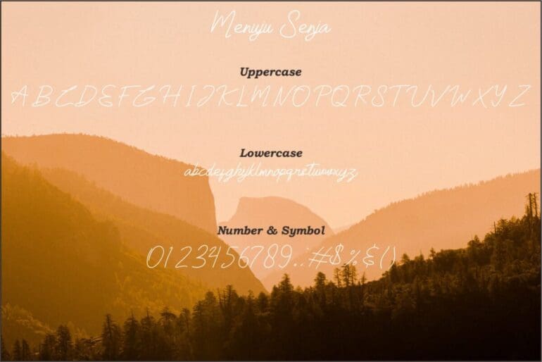 Menuju Senja this is Handwritten font. It’s perfect for your design such as logo, branding, graphic design, photography, product, packaging, social media posts, etc.