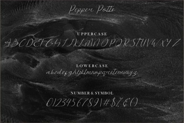 Pepper Potts this is Handwritten font. It’s perfect for your design such as logo, branding, graphic design, packaging, social media posts, etc.