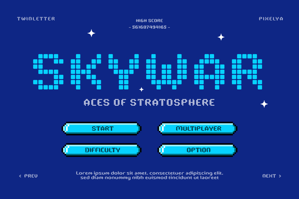 Each letter in Pixelya emits vivid pixel characteristics, creating a look true to the classic video game era. The font maintains clarity and readability while featuring a signature pixel art graphic style that invites joy and nostalgia.
