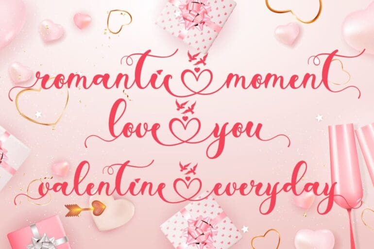 With Lovely is a very pretty script calligraphy font. This font has beautiful decorations in the form of love, birds, and there are also butterflies. This font is equipped with uppercase, lowercase, alternates, swash, titling, ligatures, numerals, punctuations, and also multilingual support. The embellishments on the font are very easy to apply, and there are also instructions for use in the preview. Very suitable for weddings, valentines, invitations, stickers, birthdays, Christmas, winter, easter and others.