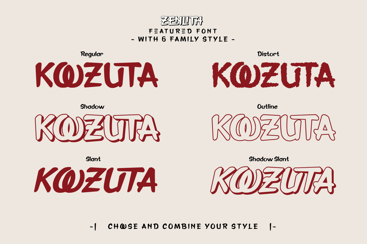 Zenlith not only conveys the aesthetic character of Japan but also expresses the balance and peace often associated with Japanese culture. Therefore, this font can be an ideal choice for those who want to create designs that embrace traditional Japanese beauty in a modern form.